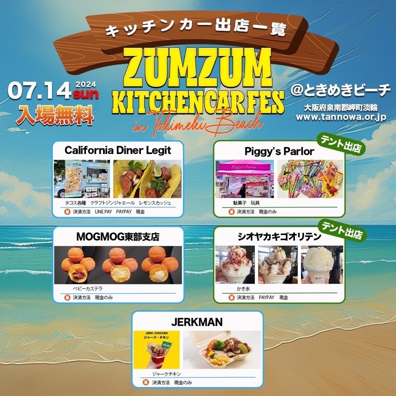 イベント出店のお知らせ【ZUMZUM KITCHENCARFES @ときめきビーチ】 2024-07-01 04:04:05 UTC 2024.7.14(日)イベント詳細 出店店舗 前回4月20日に大泉緑地で行われたイベントに引き続き、 この度7月14日(日)開催の「ZUMZUM KITCHENCAR FES inときめきビーチ」にも Piggy’sParlorとしての出店が決定致しました!! ▼イベント情報 ZUMZUM KITCHENCAR FES in Tokimeki Beach 日時:2024年7月14日(日)12:00~17:00 場所:ときめきビーチ 大阪府泉南郡岬町淡輪 入場料:無料 お近くにお住まいの方、お時間のある方はぜひ遊びに来てください★